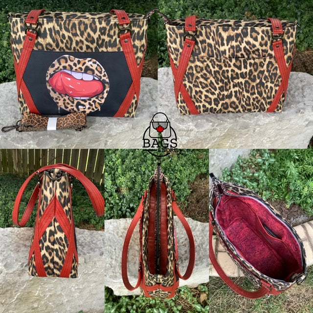 There is one exterior slip pocket with a magnetic snap closure however, a turn lock can be used in place of the magnetic snap to add your own creative touch. Many tester bags used twisted strap rings however you can use regular rectangle rings or any strap rings you have on hand.