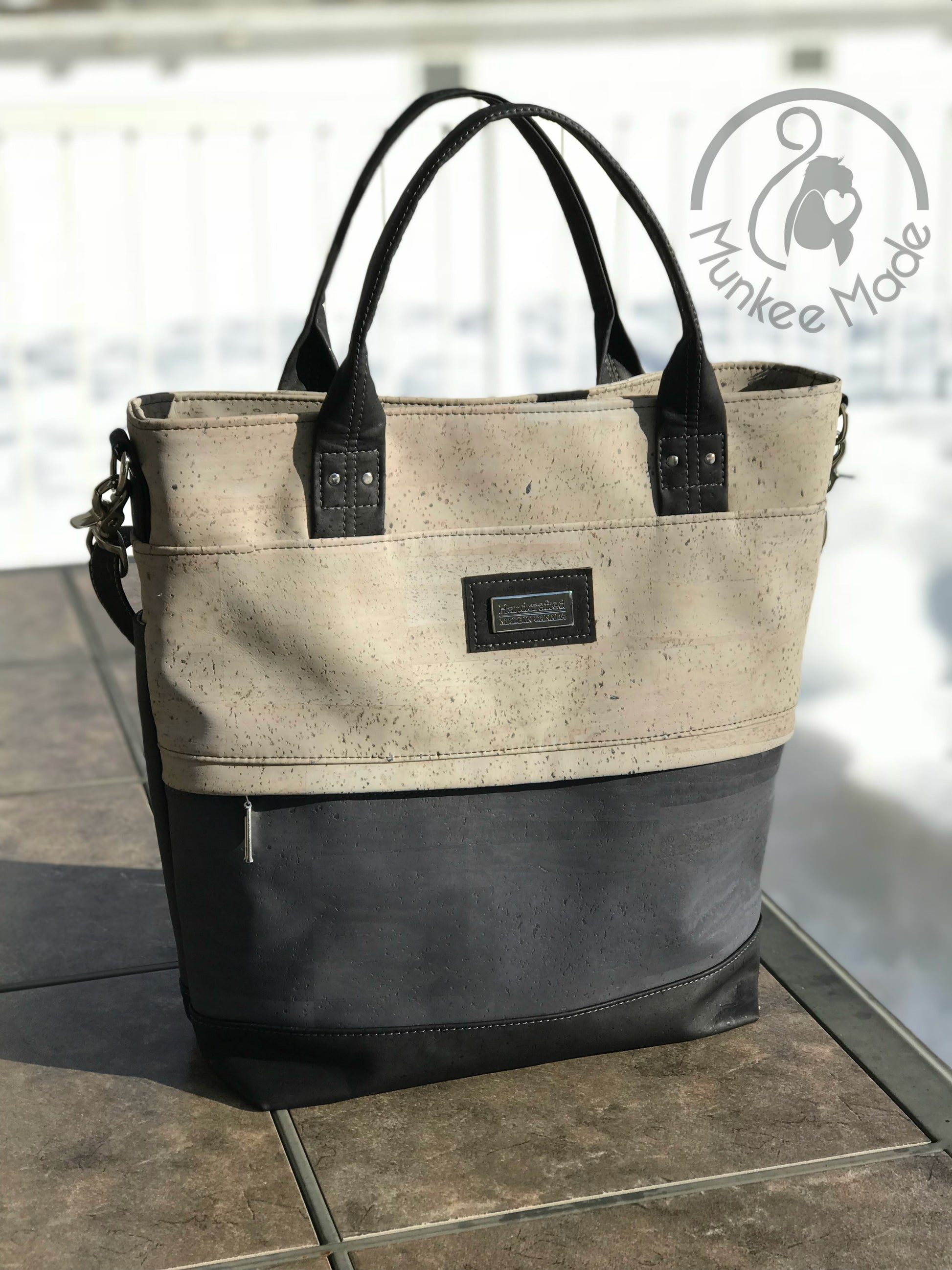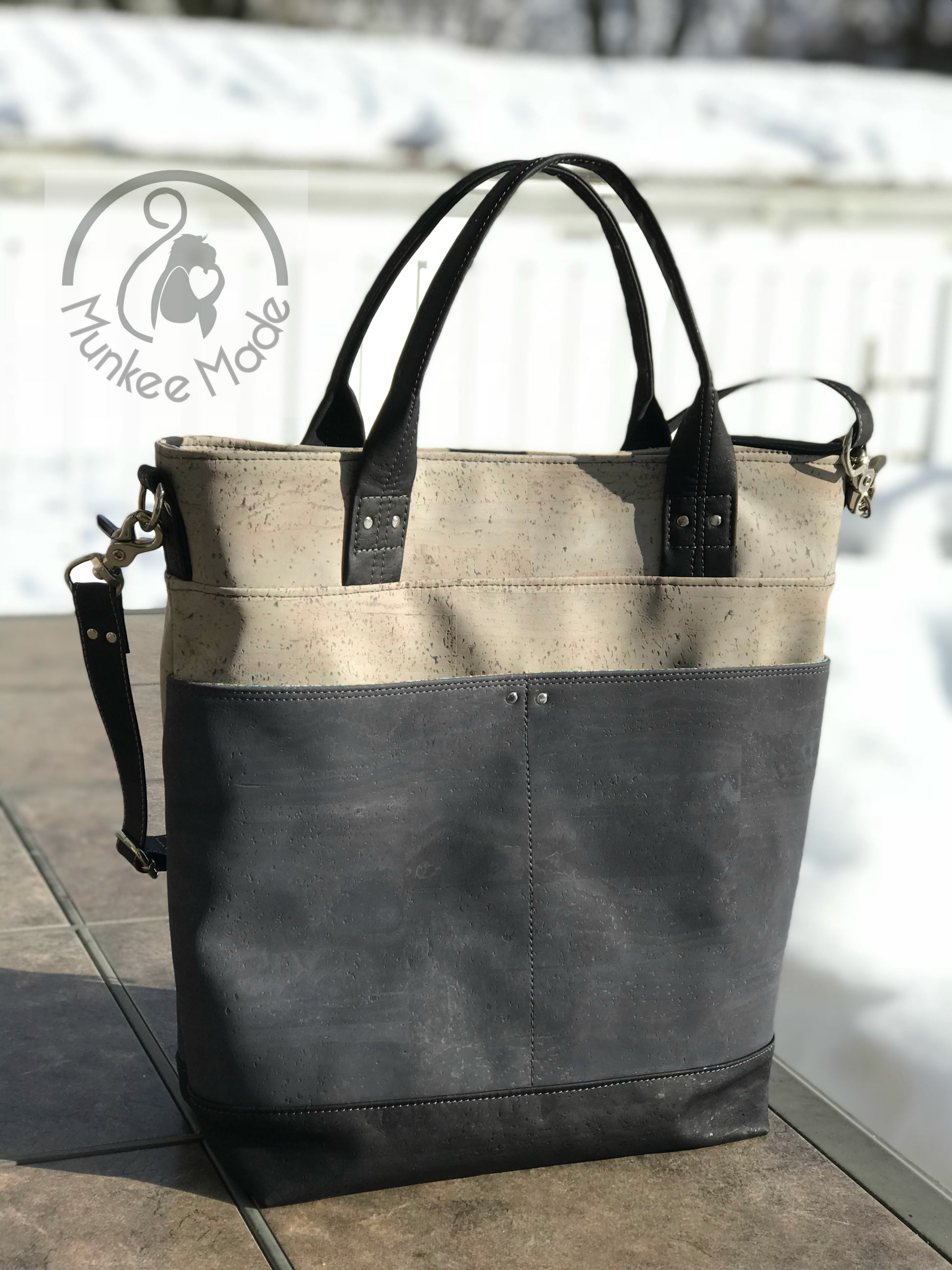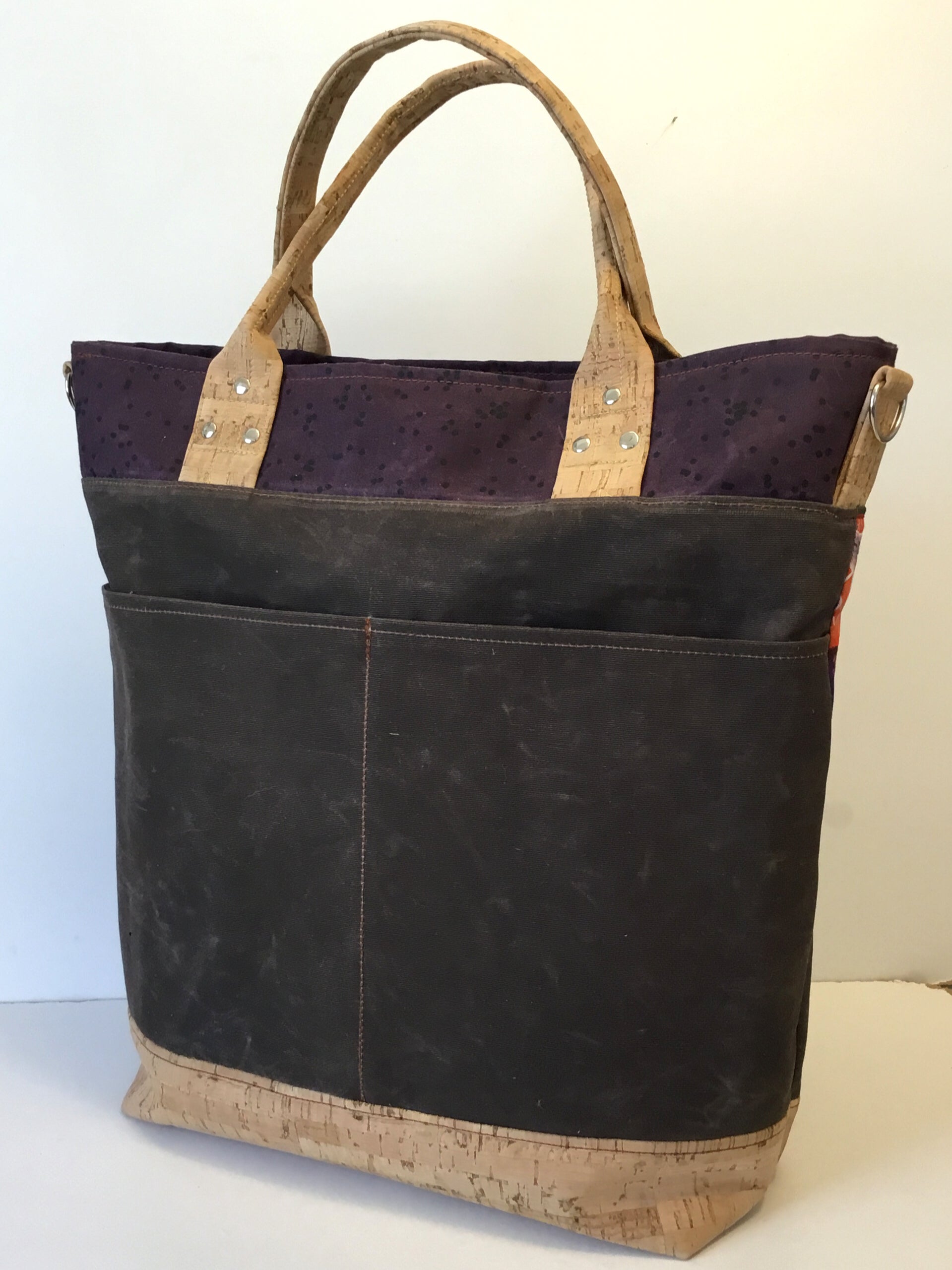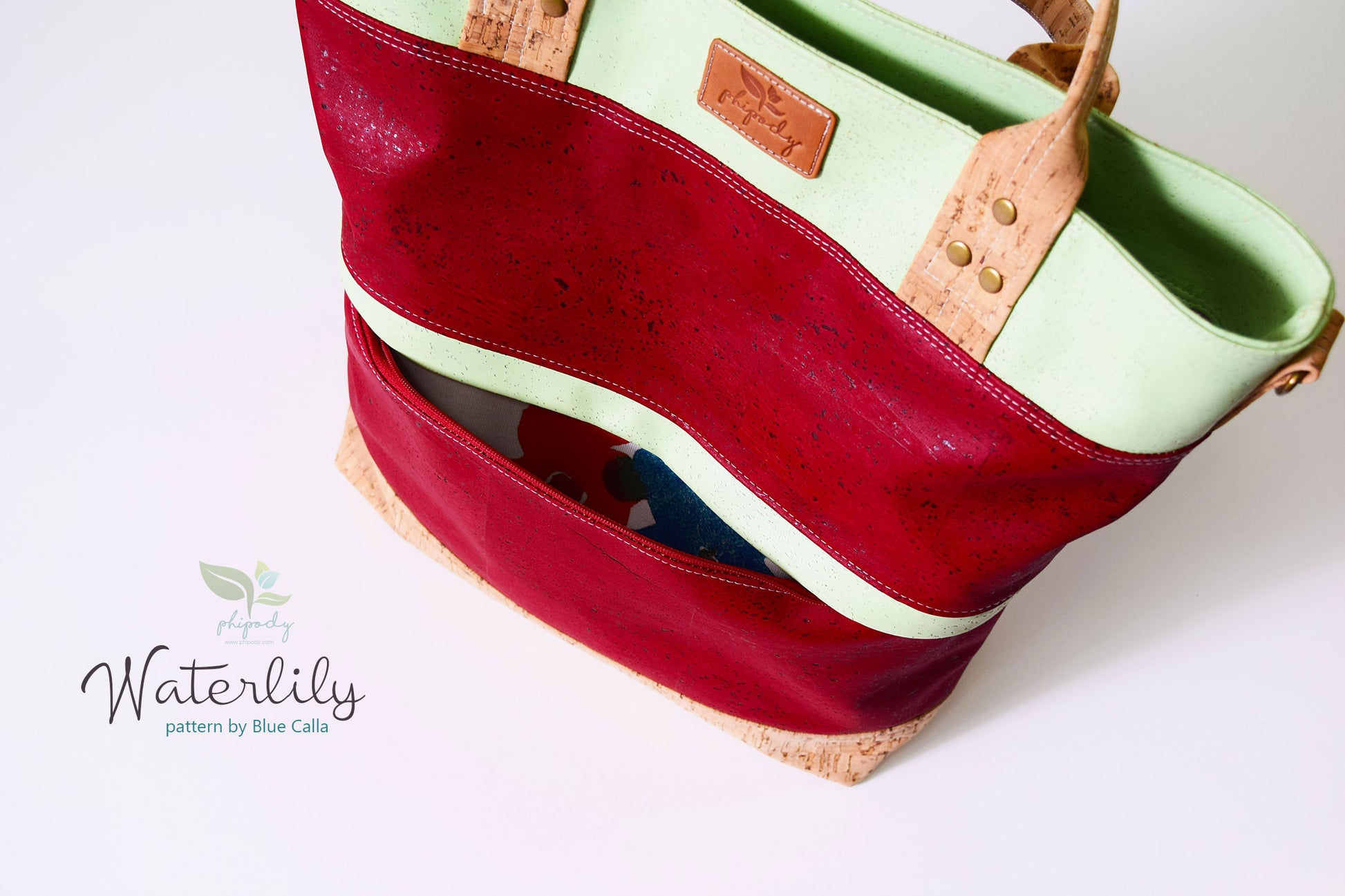 The Waterlily is a large sized tote that can be made in waxed canvas, cork, vinyl, regular cotton fabric or a combination of these materials.