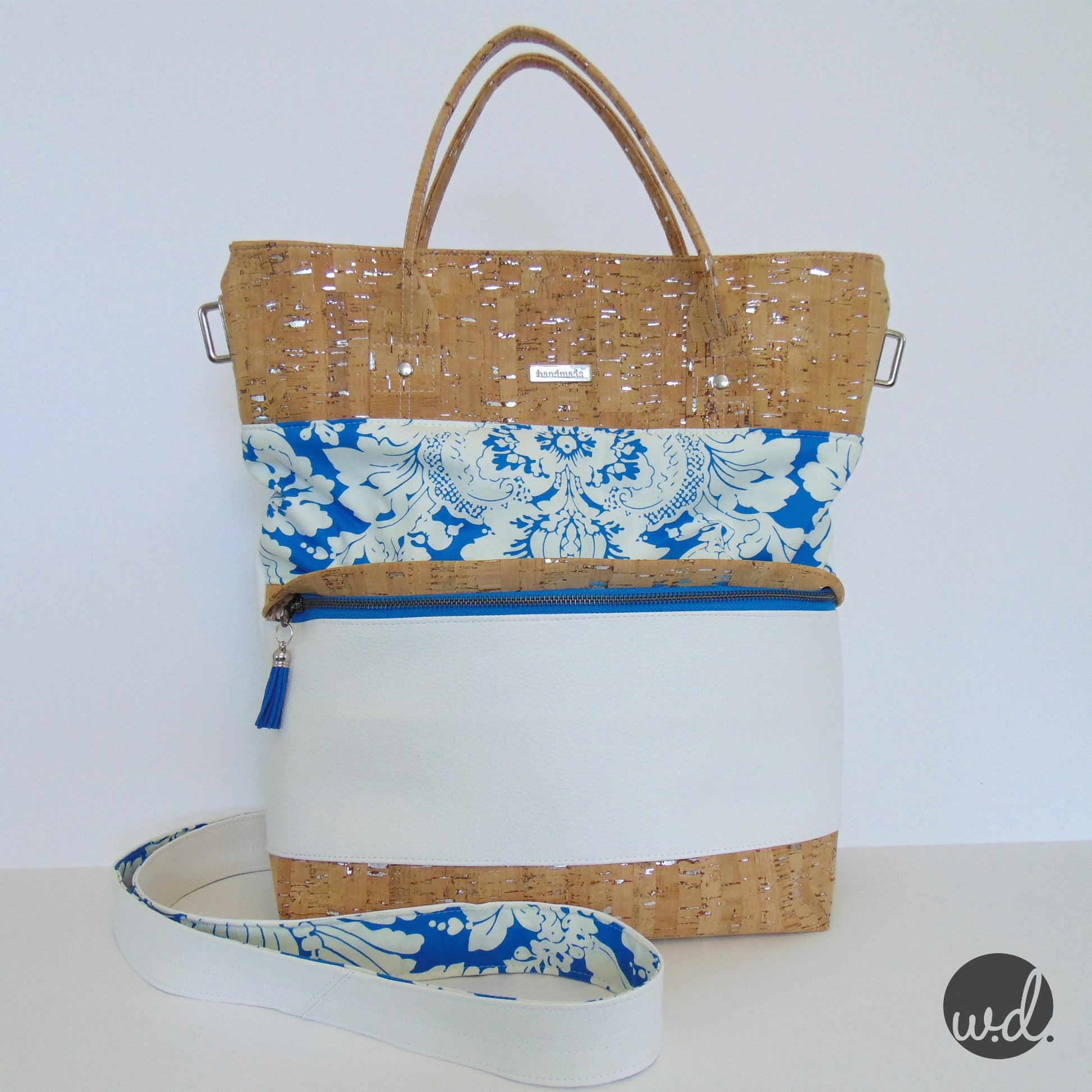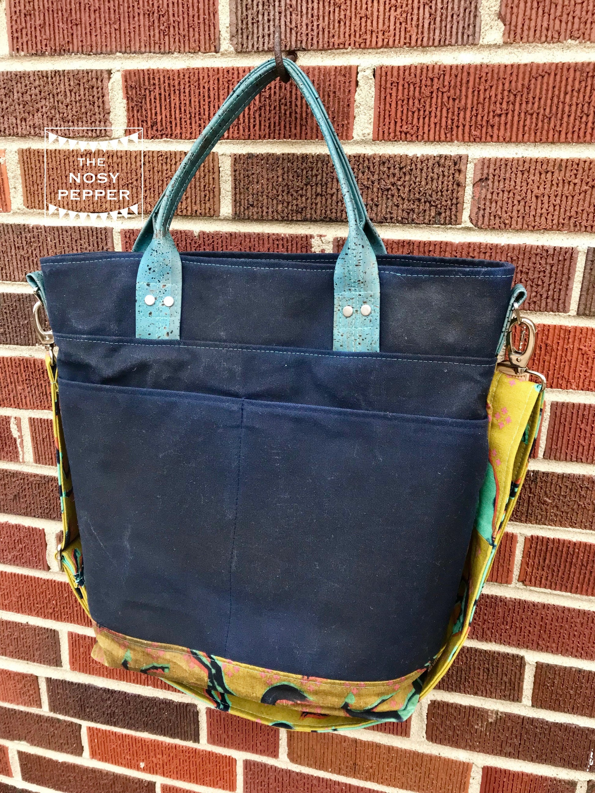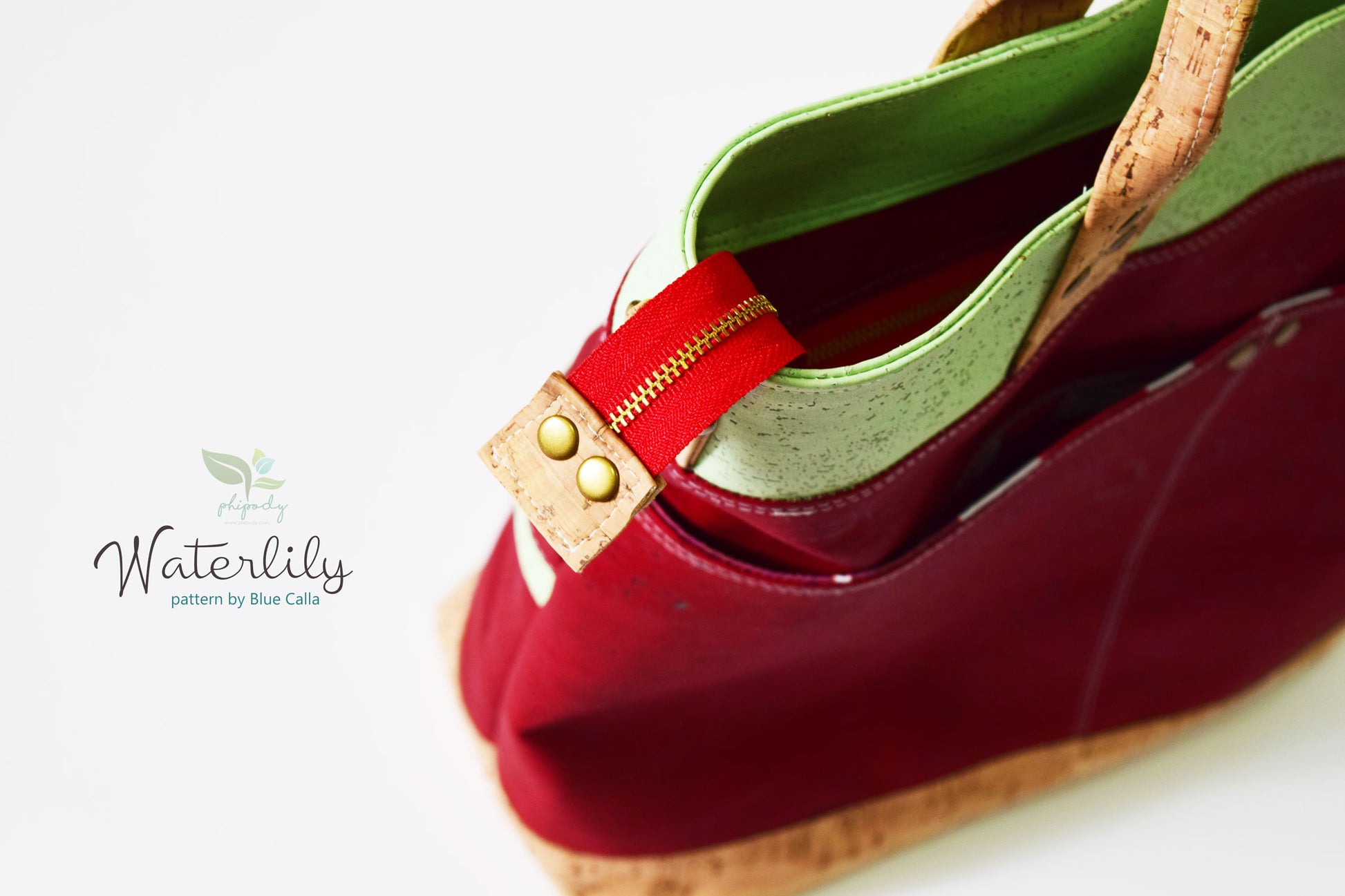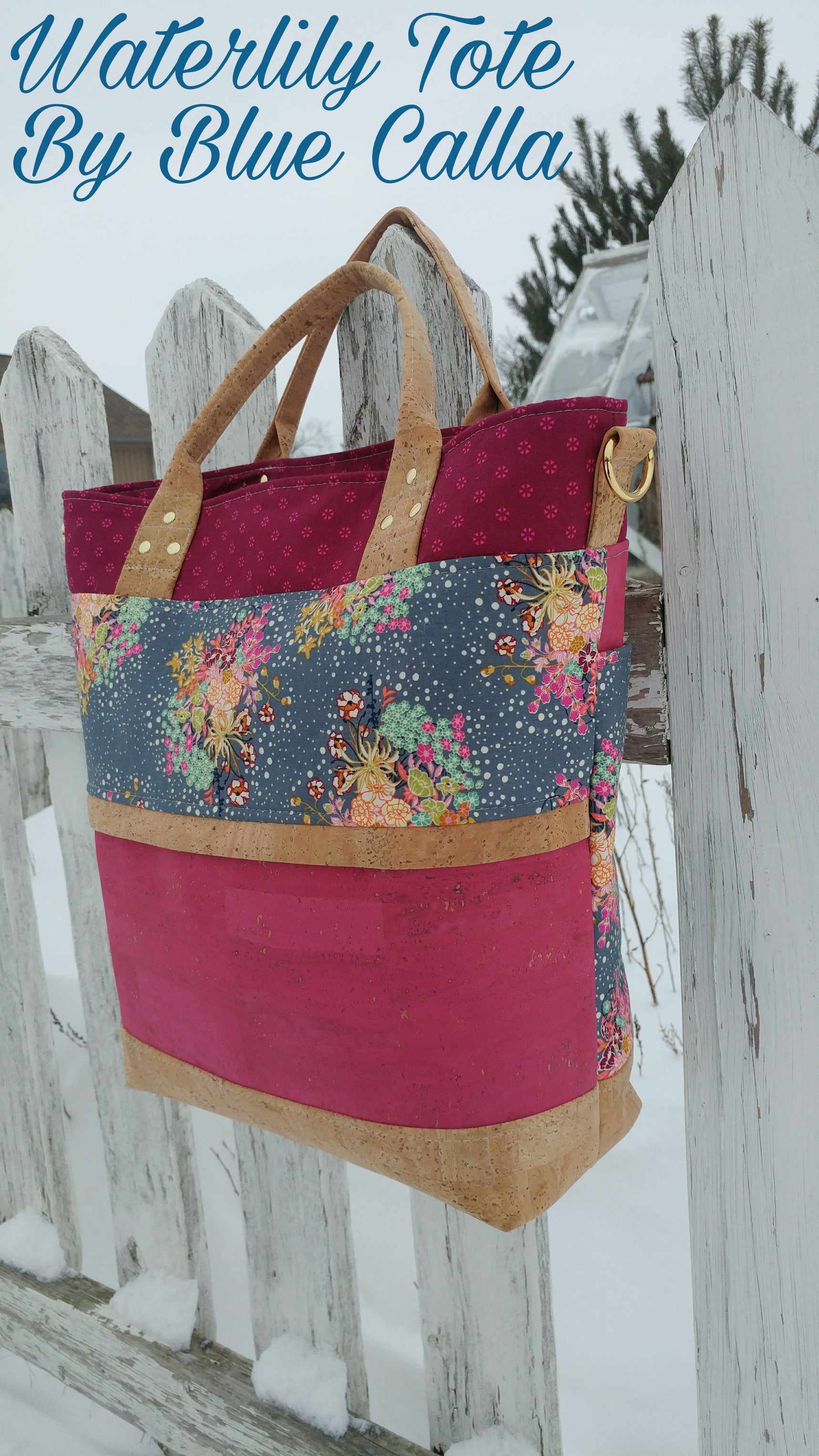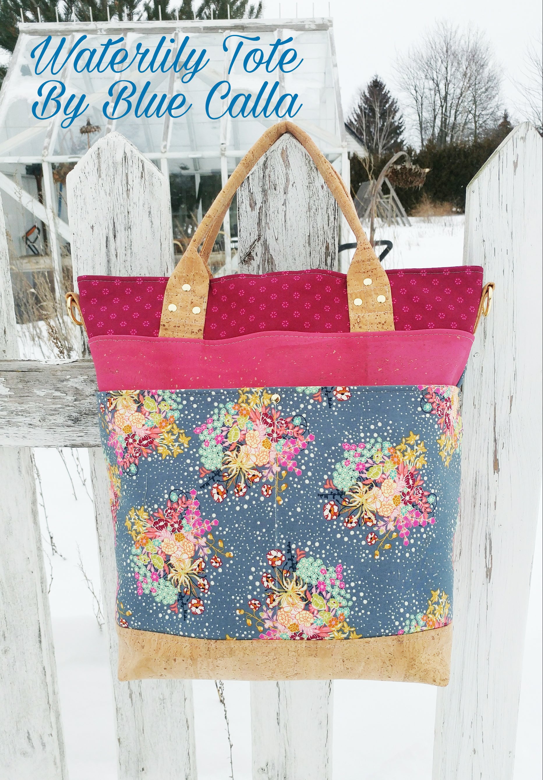 The Waterlily is a large sized tote that can be made in waxed canvas, cork, vinyl, regular cotton fabric or a combination of these materials.