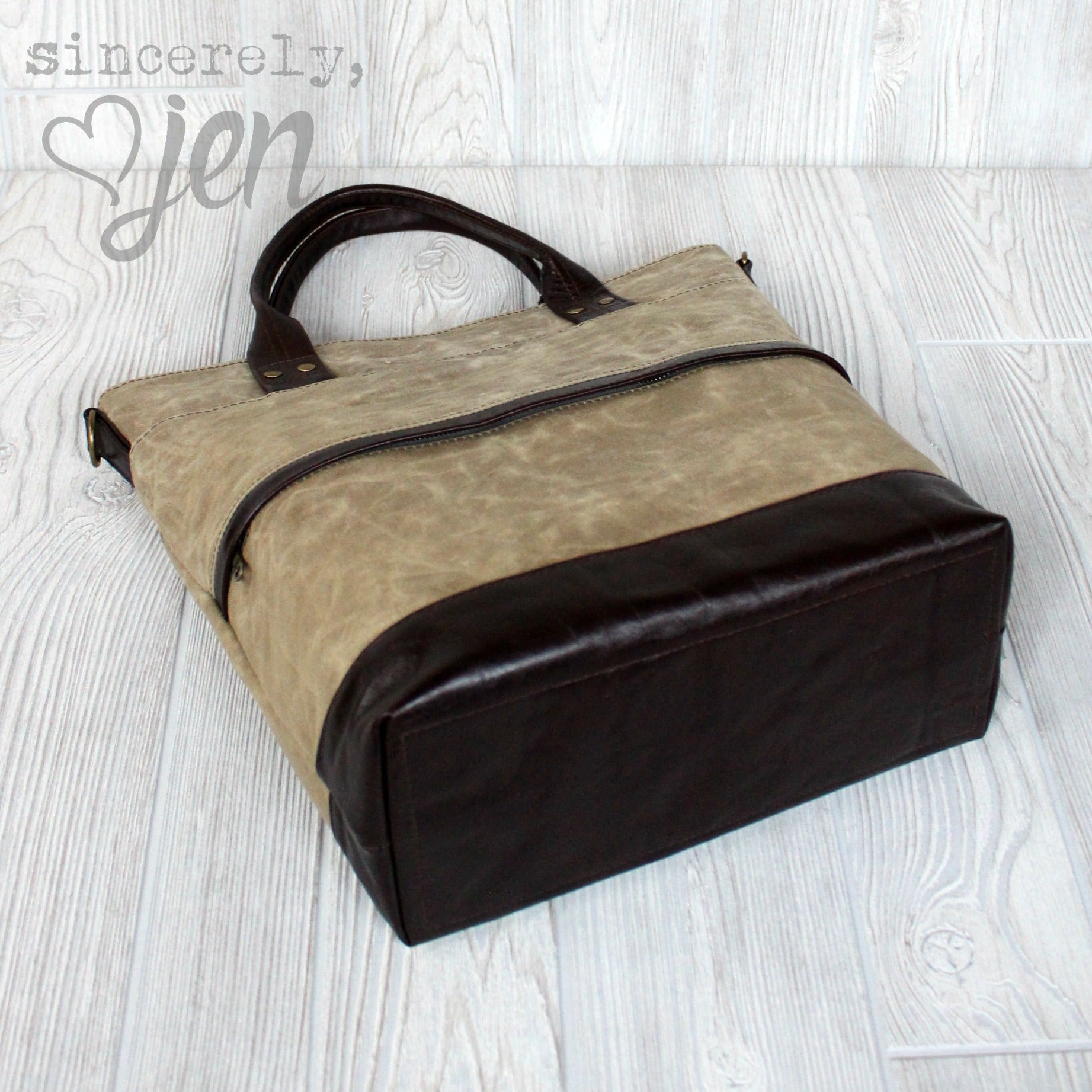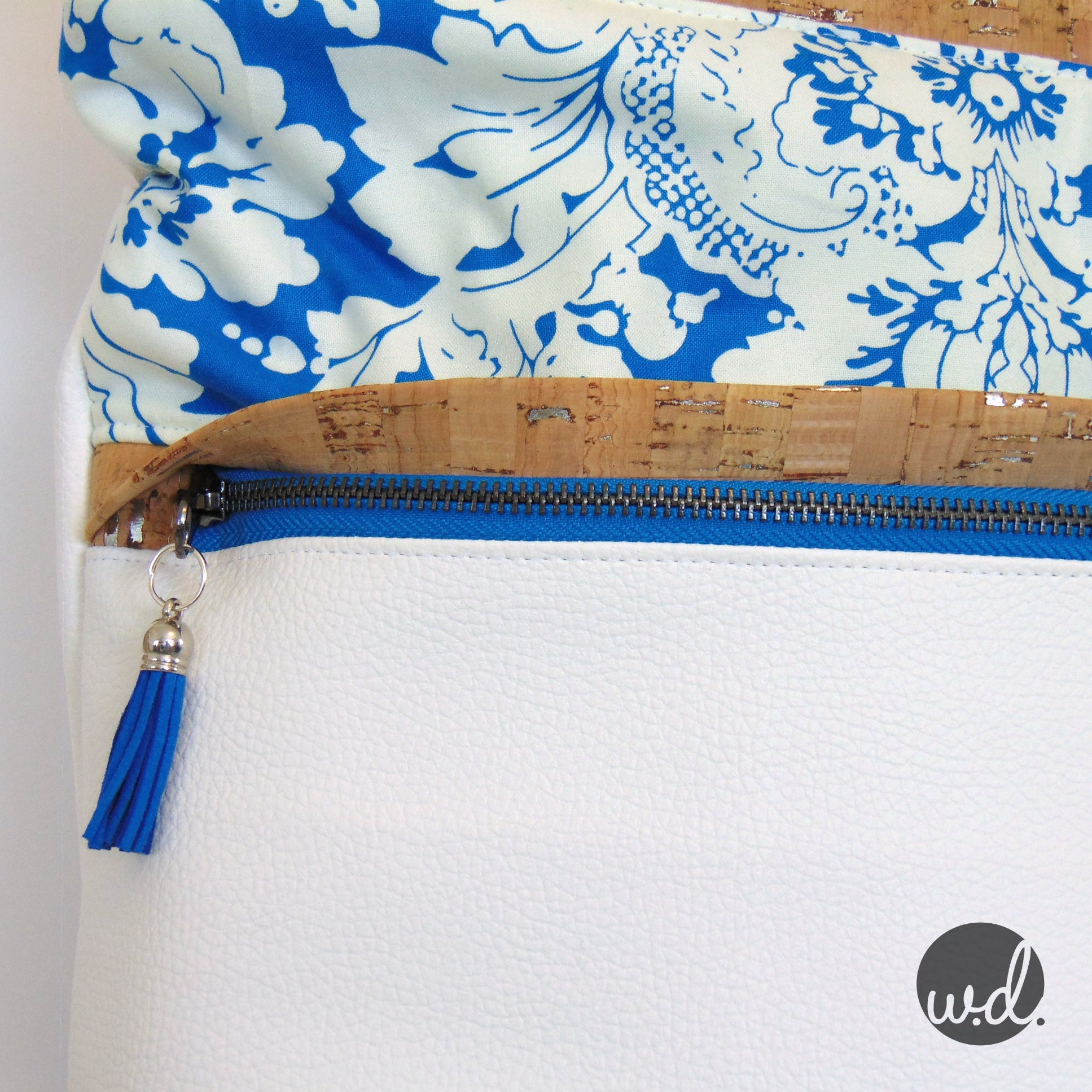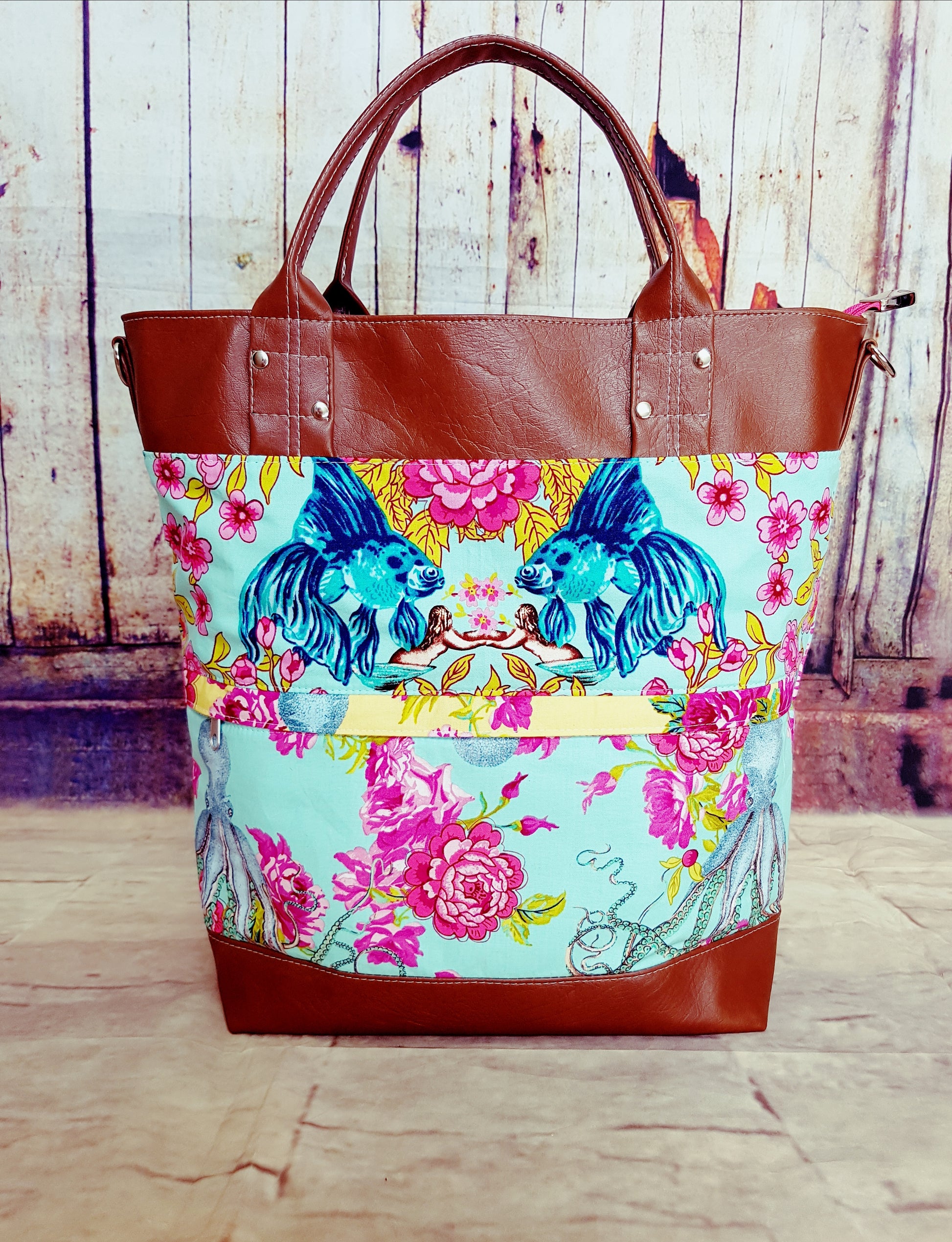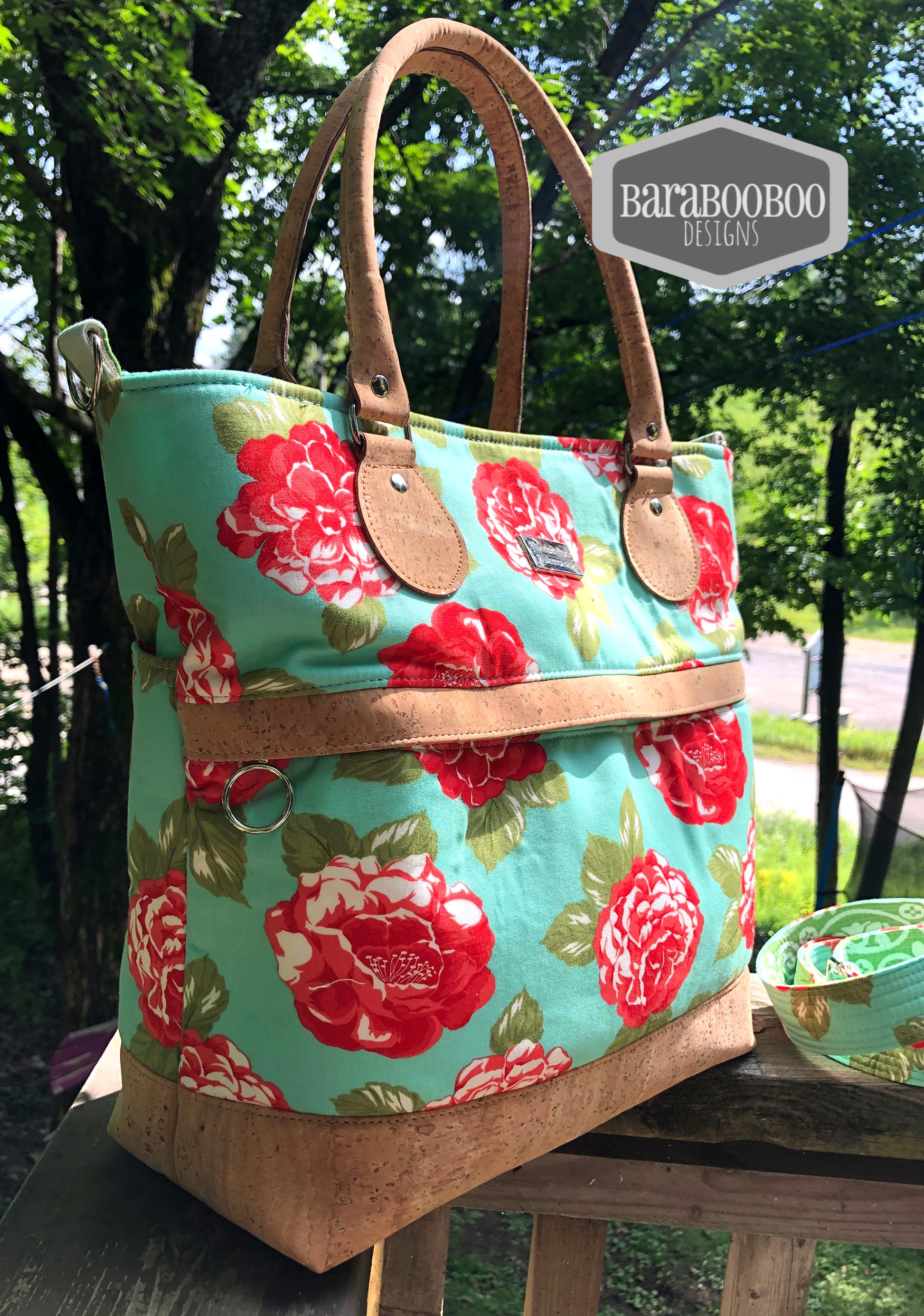 The Waterlily is a large sized tote that can be made in waxed canvas, cork, vinyl, regular cotton fabric or a combination of these materials.
