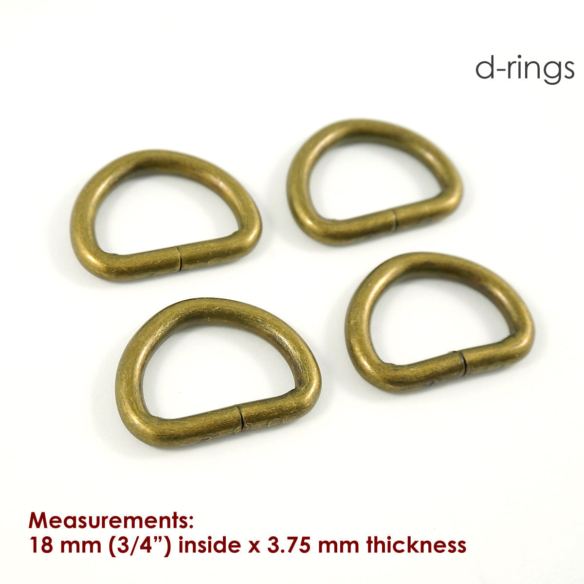 3/4" D RINGS (SET of 4) - Available in 6 metal finishes