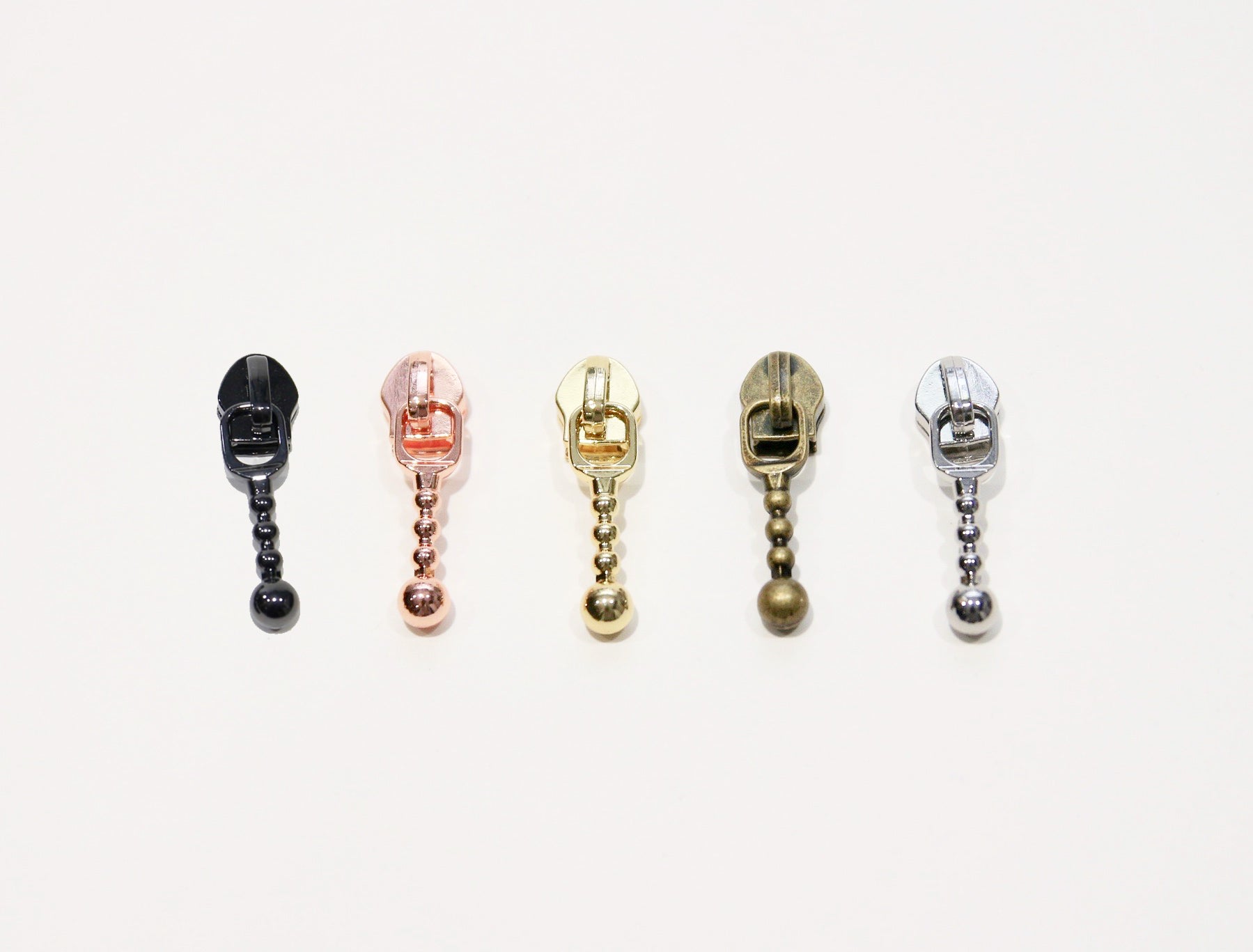 #5 coil zipper pull - AUTO LOCK Beaded style - Available in 5 finishes