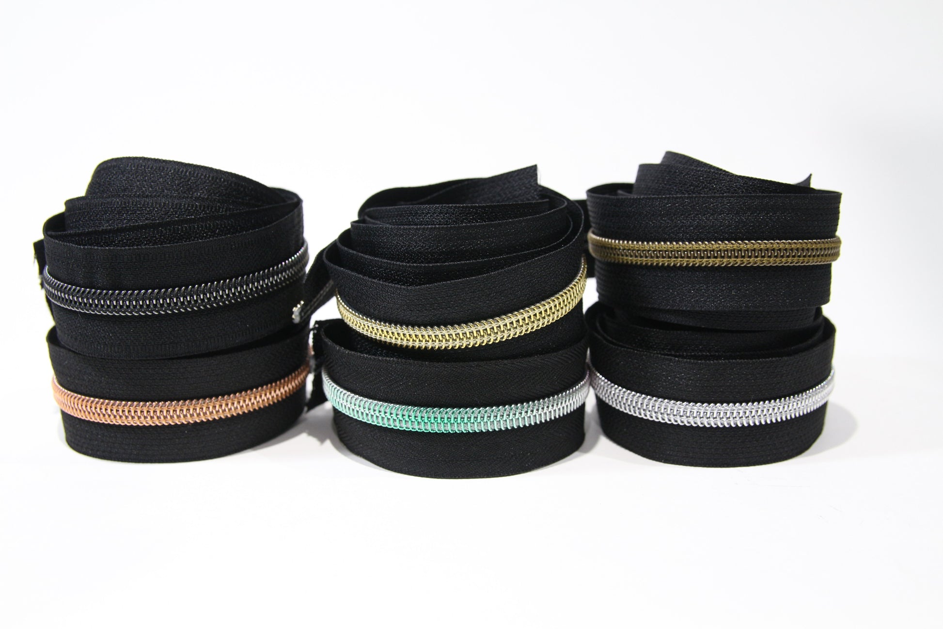 All black zipper tape bundle in 6 finishes. 1 metre (39") of each: