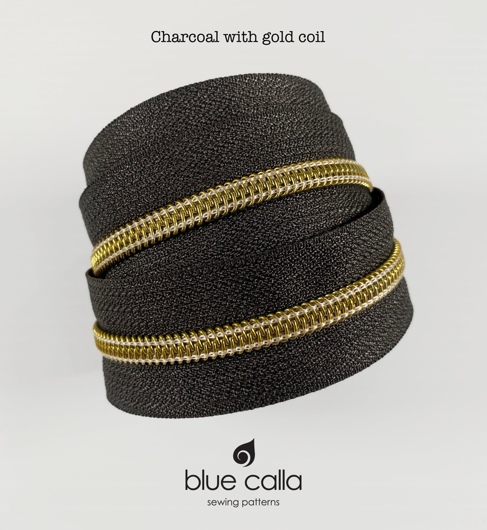 GOLD COIL - CHARCOAL - #5 Metallic Nylon Coil Zipper tape