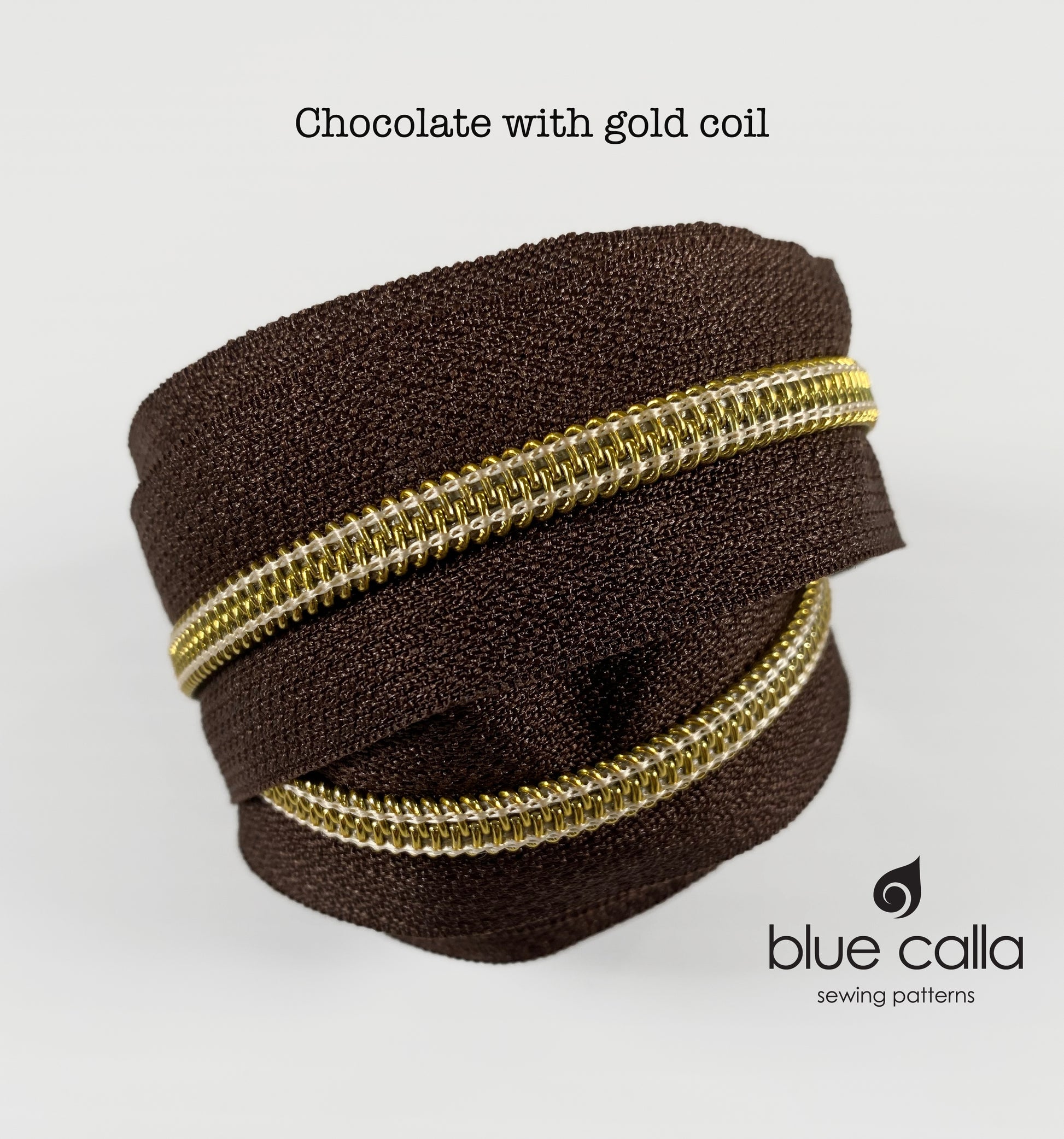 GOLD COIL - CHOCOLATE - #5 Metallic Nylon Coil Zipper tape