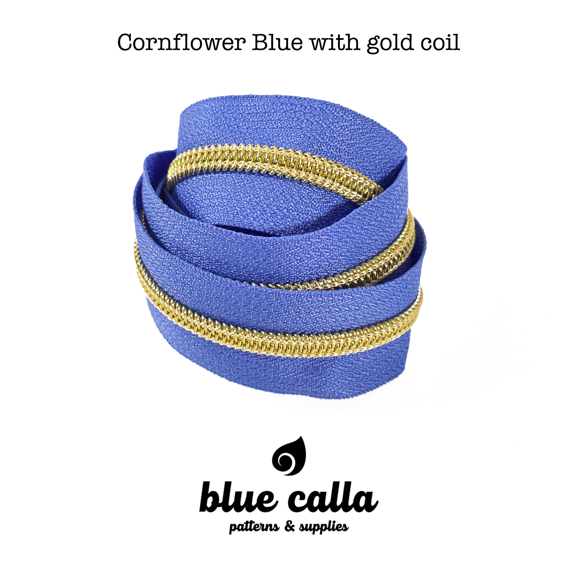 GOLD COIL - CORNFLOWER BLUE - #5 Metallic Nylon Coil Zipper tape