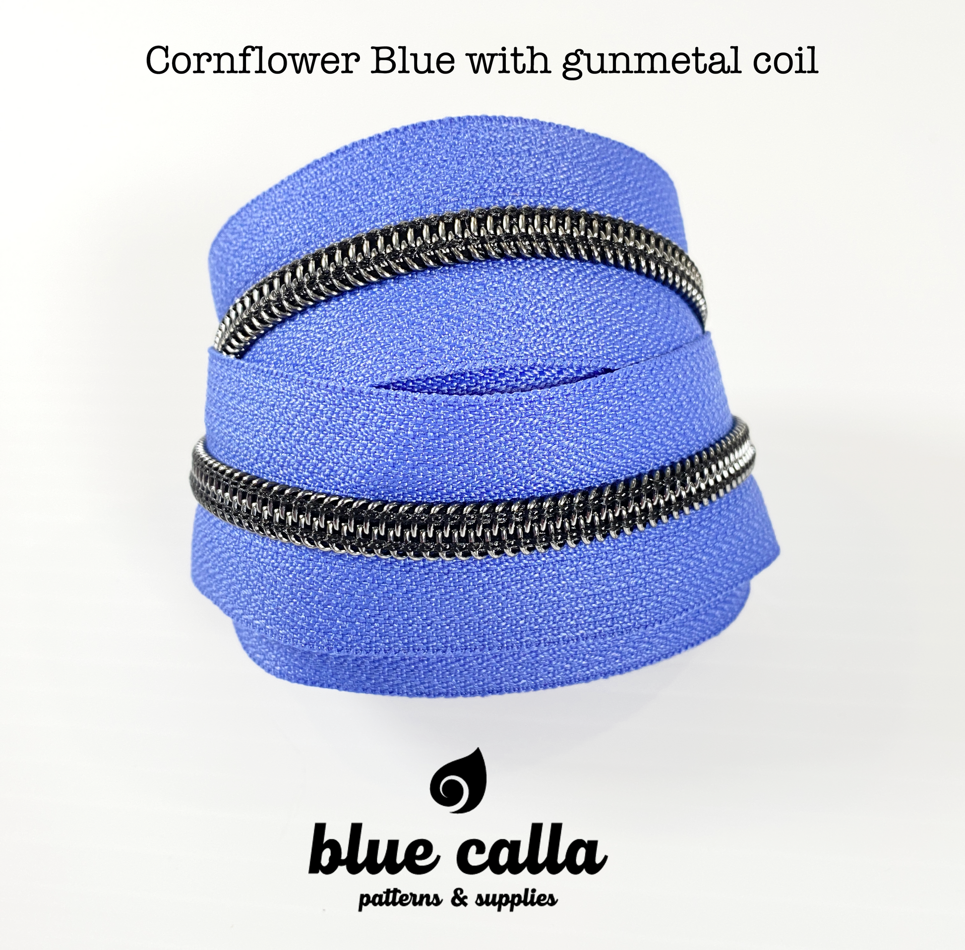 GUNMETAL COIL - CORNFLOWER BLUE - #5 Metallic Nylon Coil Zipper tape