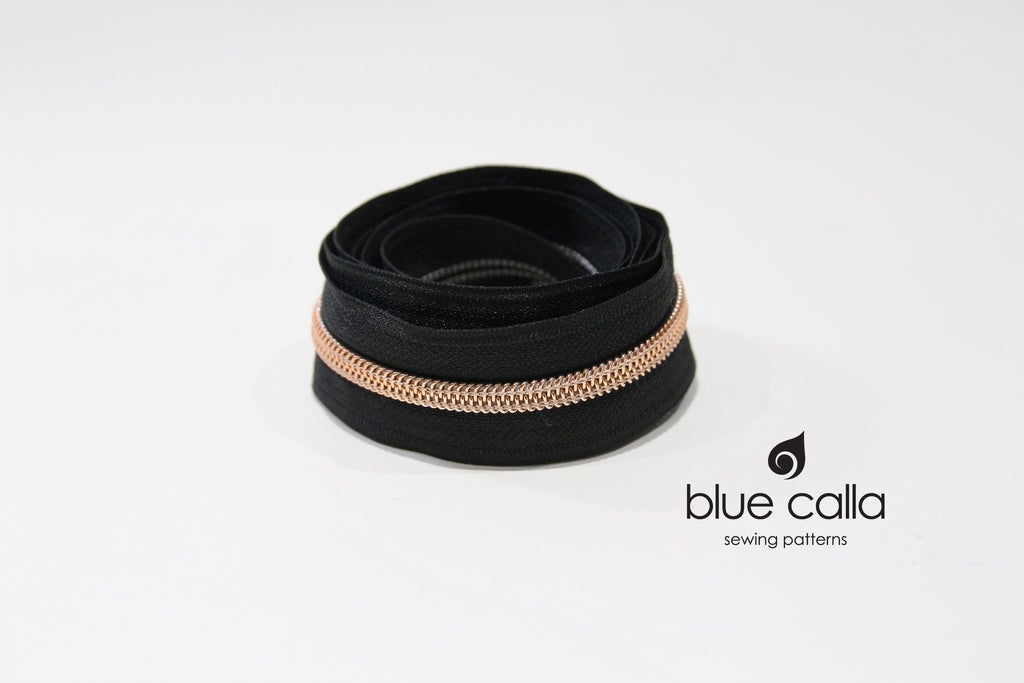 ROSE GOLD COIL - BLACK - #5 Metallic Nylon Coil Zipper tape