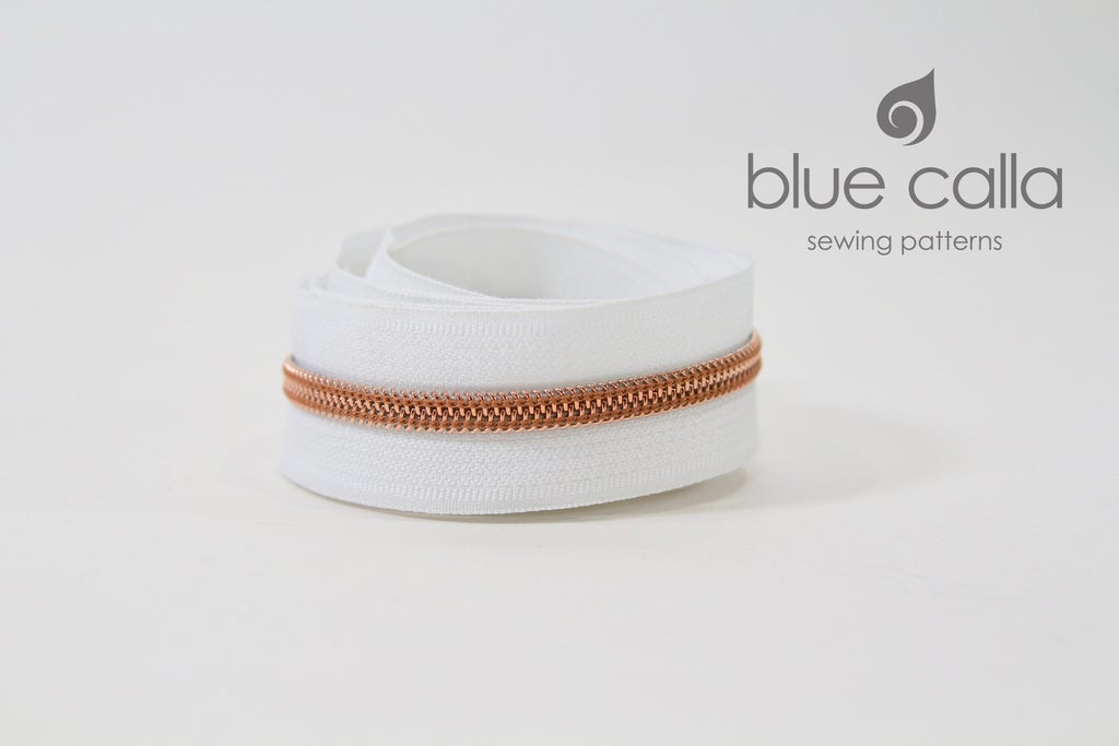 ROSE GOLD COIL - WHITE - #5 Metallic Nylon Coil Zipper tape