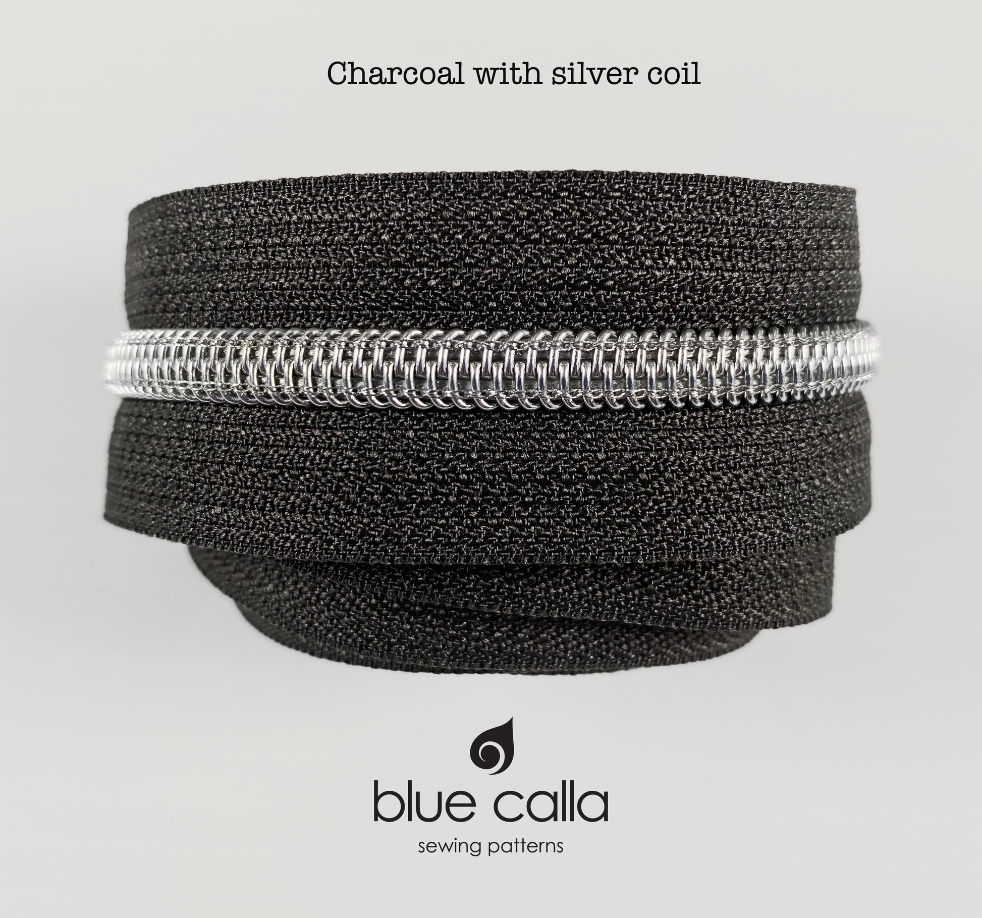 SILVER COIL - CHARCOAL - #5 Metallic Nylon Coil Zipper tape
