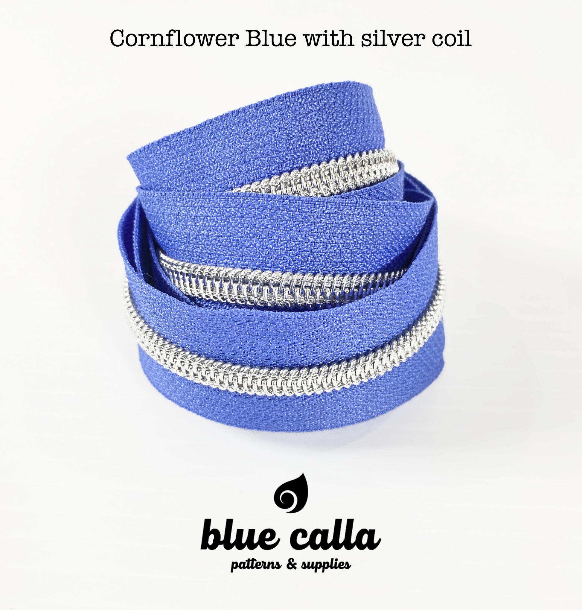 SILVER COIL - CORNFLOWER BLUE - #5 Metallic Nylon Coil Zipper tape