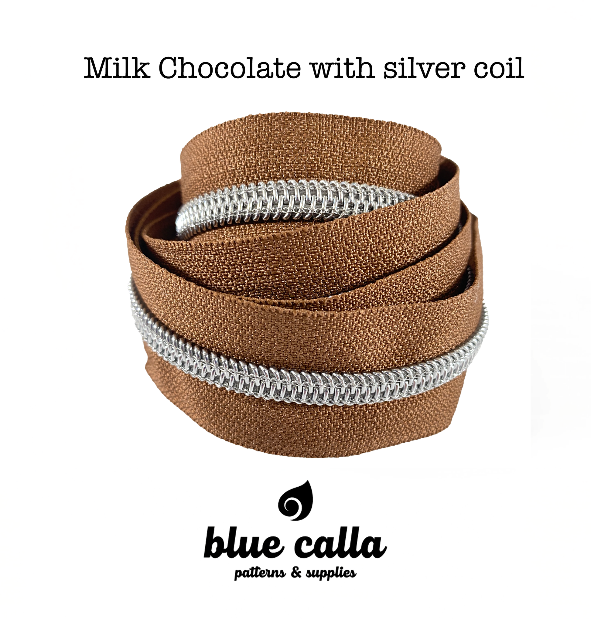 SILVER COIL - MILK CHOCOLATE - #5 Metallic Nylon Coil Zipper tape
