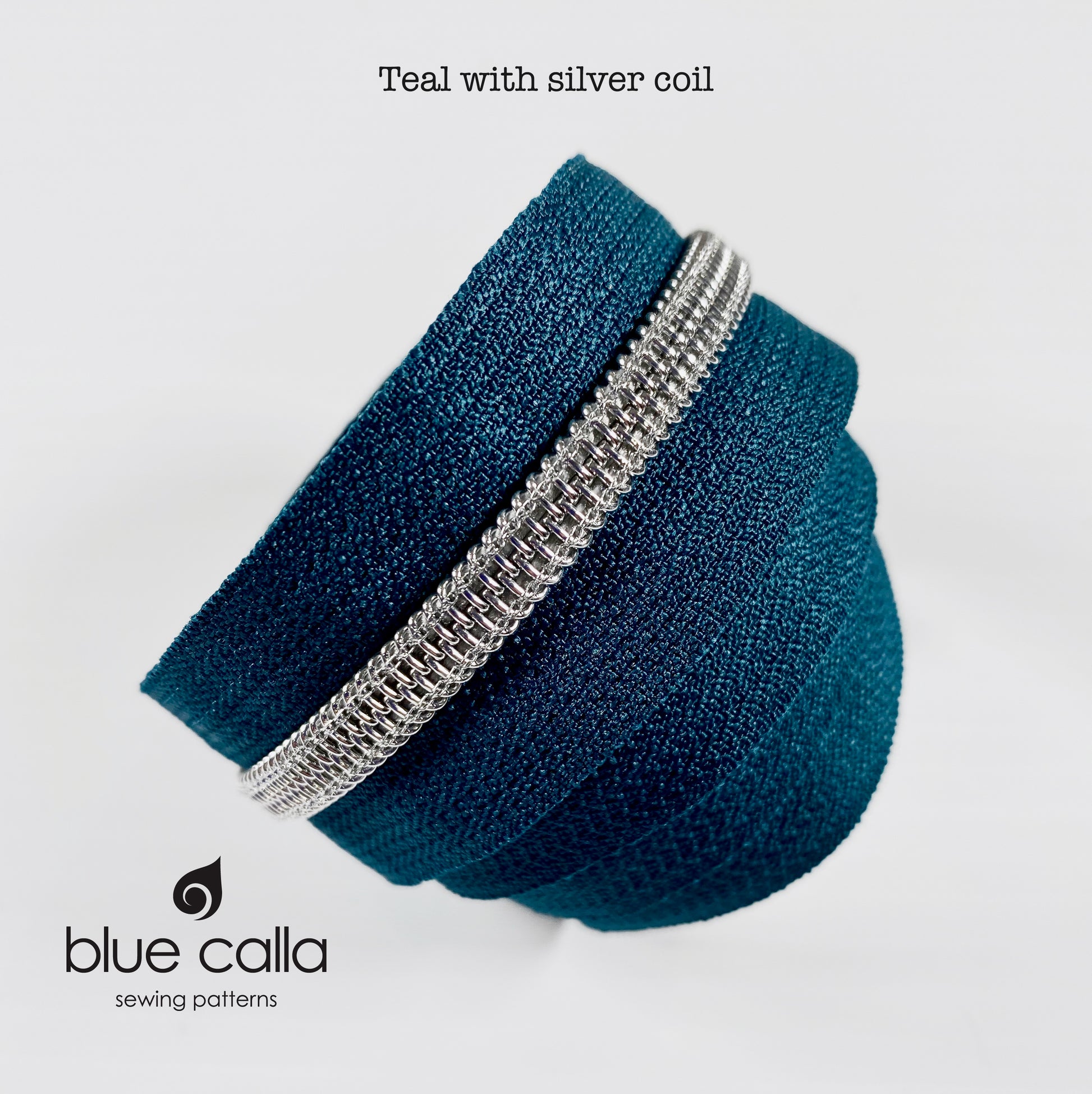 SILVER COIL - TEAL - #5 Metallic Nylon Coil Zipper tape