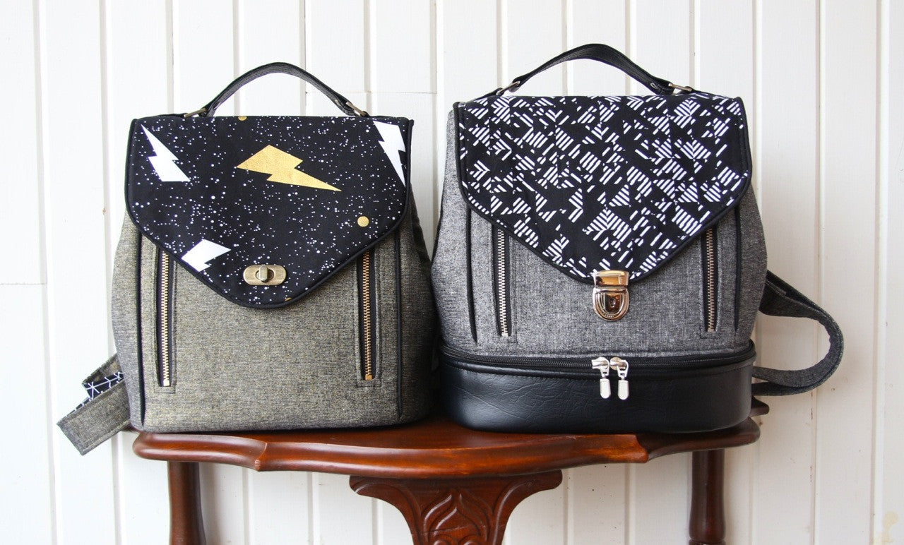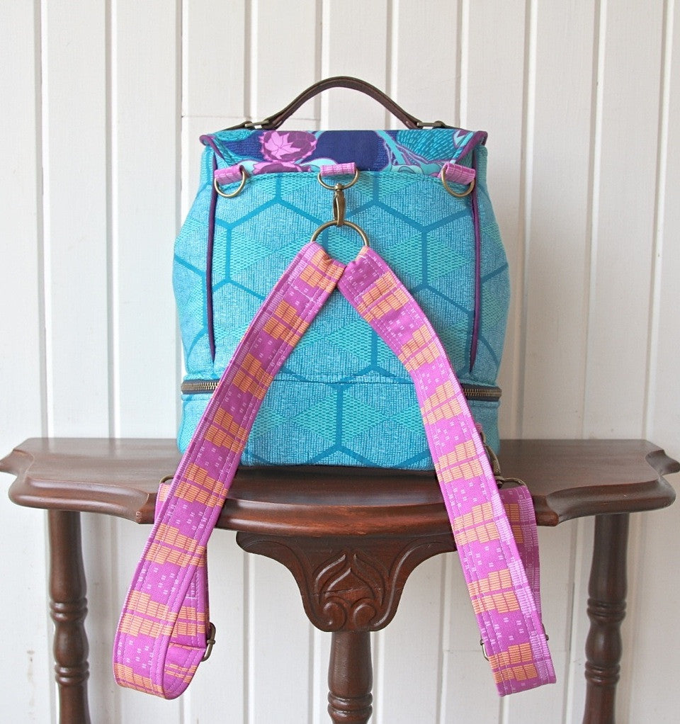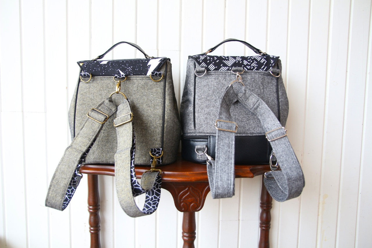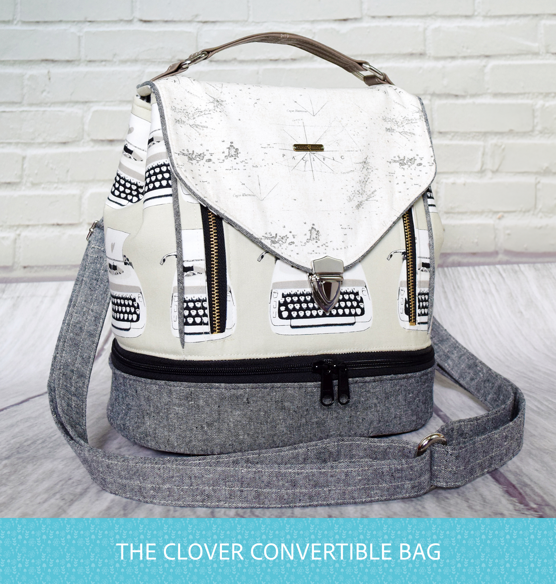 The Clover is a medium sized bag and as the name implies, it can convert from a backpack to a cross body bag. The pattern comes with instructions to make a train case style bottom as a more advanced option. If you're not ready to tackle an advanced sewing pattern or prefer the intermediate version on the left without the train case, I've prepared a tutorial for you that explains how to modify the construction.