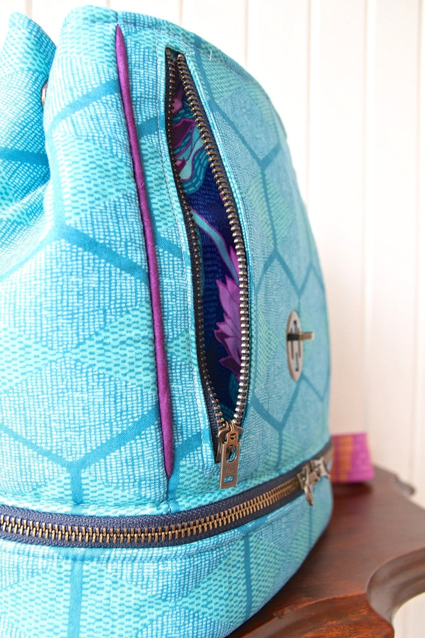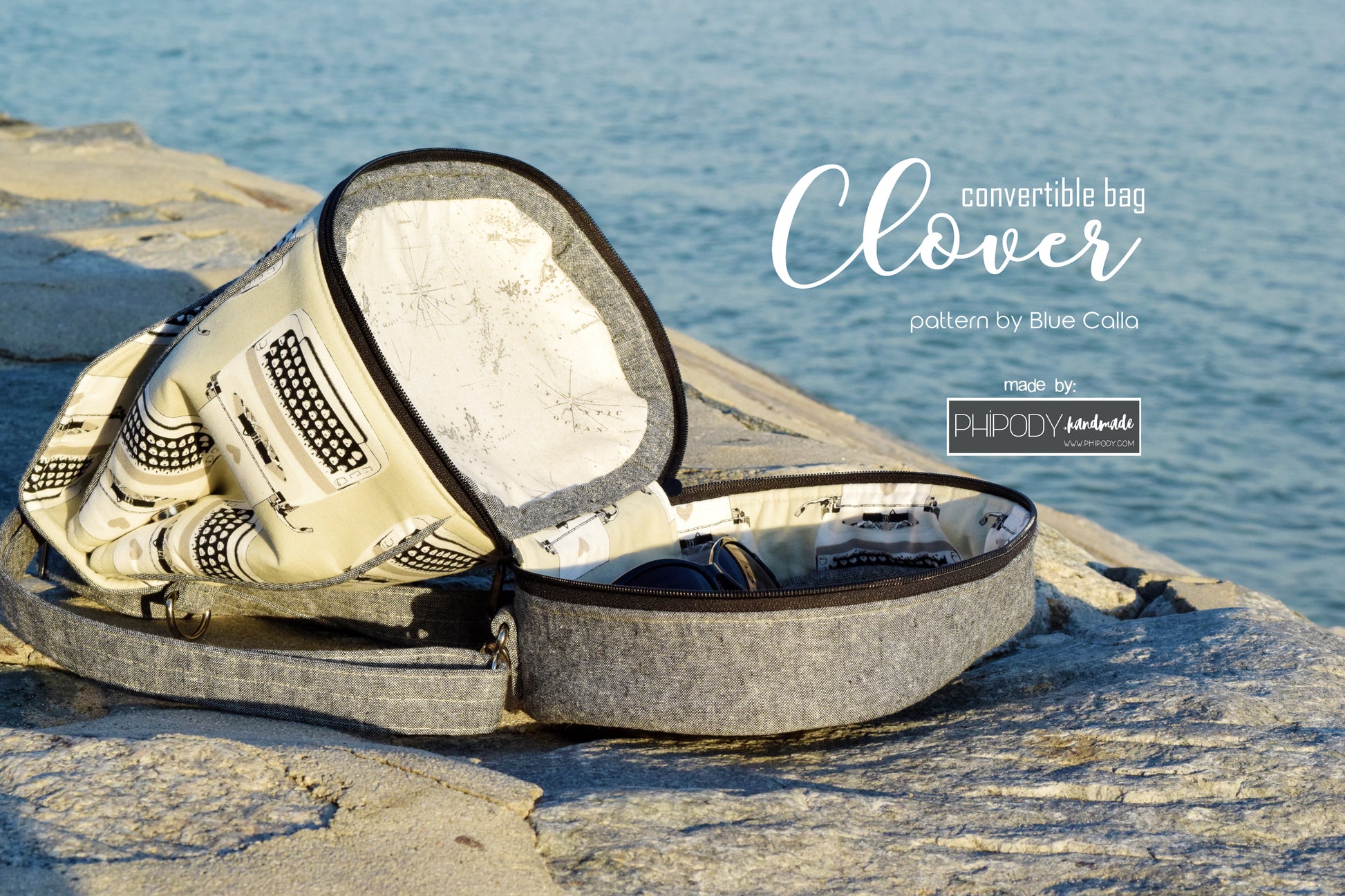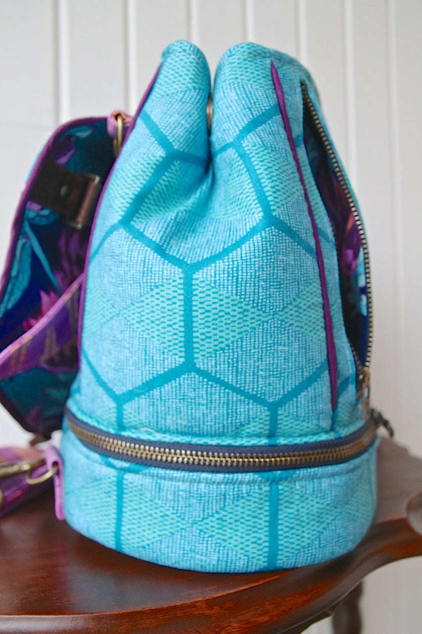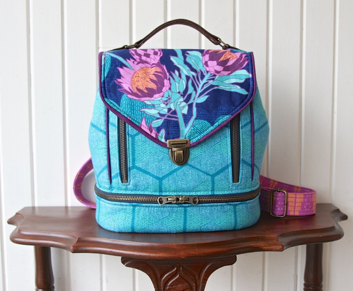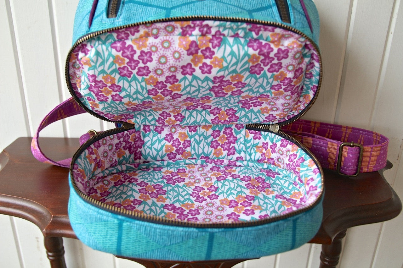The Clover is a medium sized bag and as the name implies, it can convert from a backpack to a cross body bag. The pattern comes with instructions to make a train case style bottom as a more advanced option. If you're not ready to tackle an advanced sewing pattern or prefer the intermediate version on the left without the train case, I've prepared a tutorial for you that explains how to modify the construction.