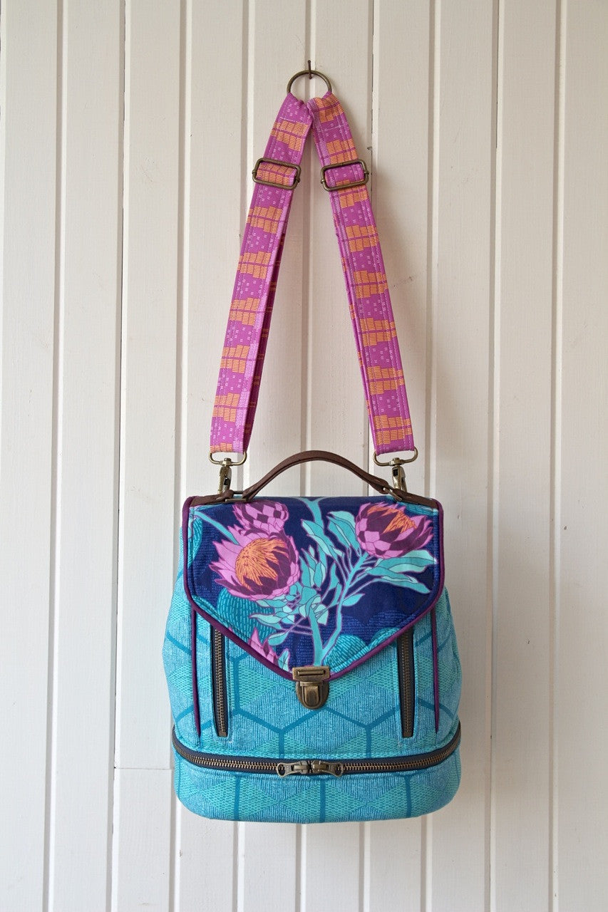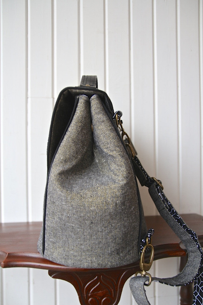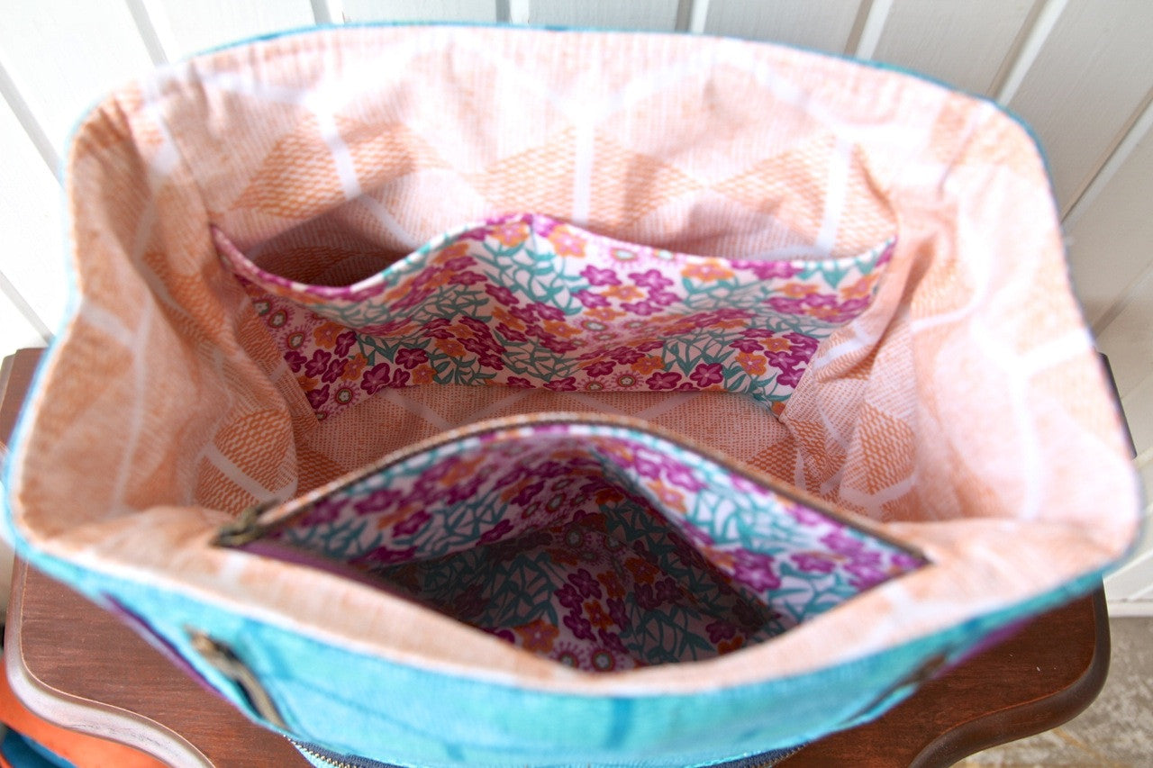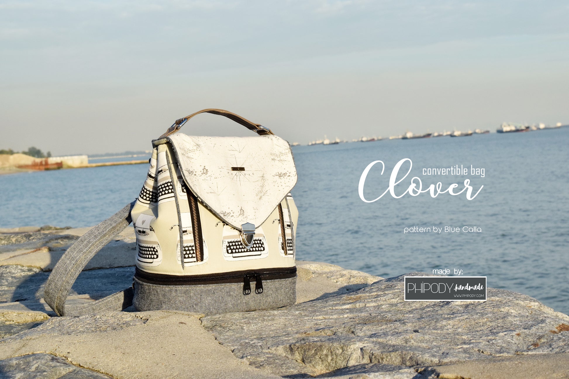 The Clover is a medium sized bag and as the name implies, it can convert from a backpack to a cross body bag. The pattern comes with instructions to make a train case style bottom as a more advanced option. If you're not ready to tackle an advanced sewing pattern or prefer the intermediate version on the left without the train case, I've prepared a tutorial for you that explains how to modify the construction.