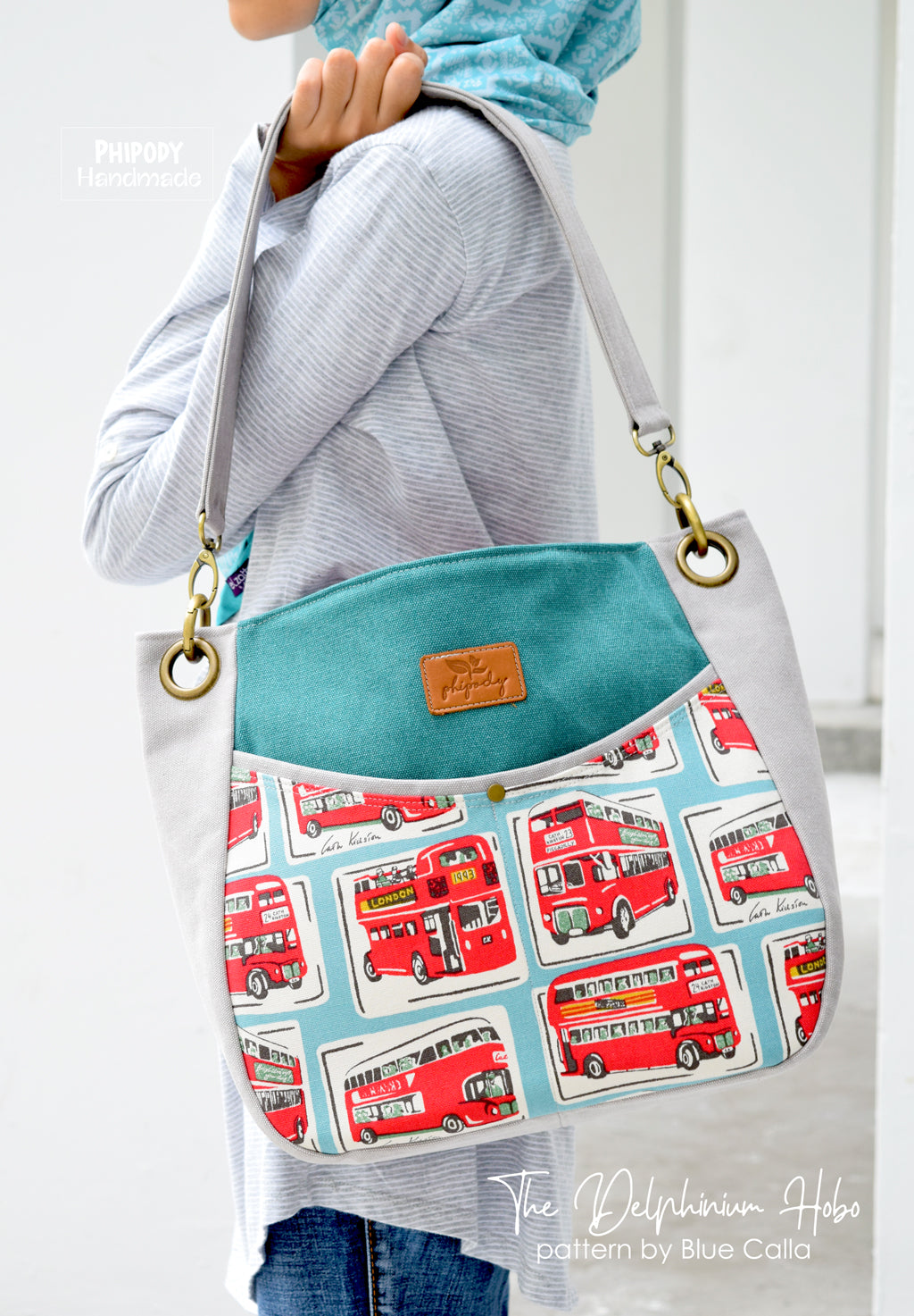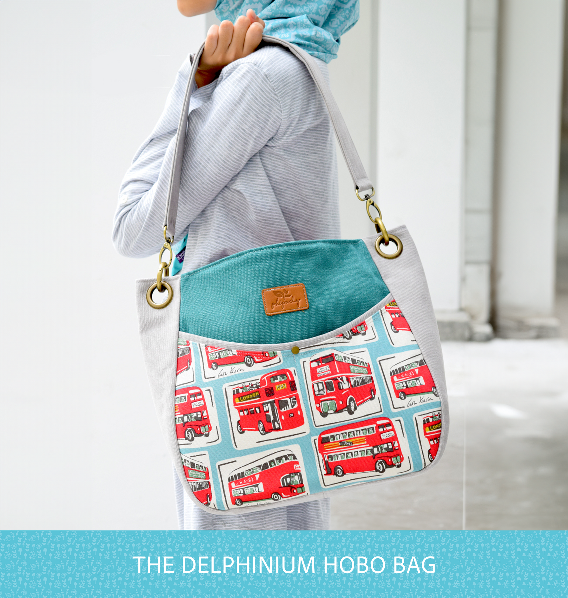 The Delphinium Hobo bag in 2 sizes - PDF sewing pattern
